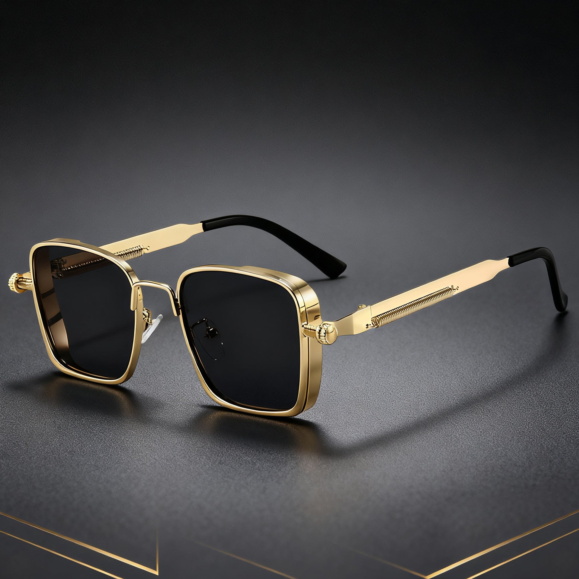Square steampunk metal sunglasses for men